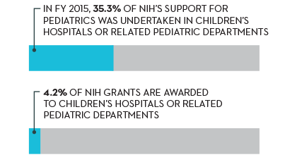 Source: Report of FY 2015 NIH Awards to Children’s Hospitals and Pediatric Departments of Medical Schools, Lisa Lanier Consulting, LLC