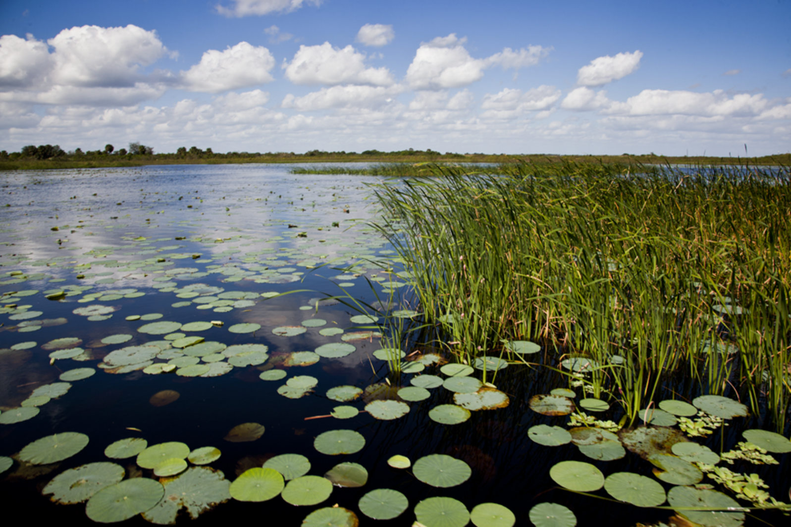 Floating vegetation creates a whole environment under the "mat" that the plants create. Fisherman "punch" through this cover with a heavy weight to get to the bottom and hopefully catch any fish living under the mats.